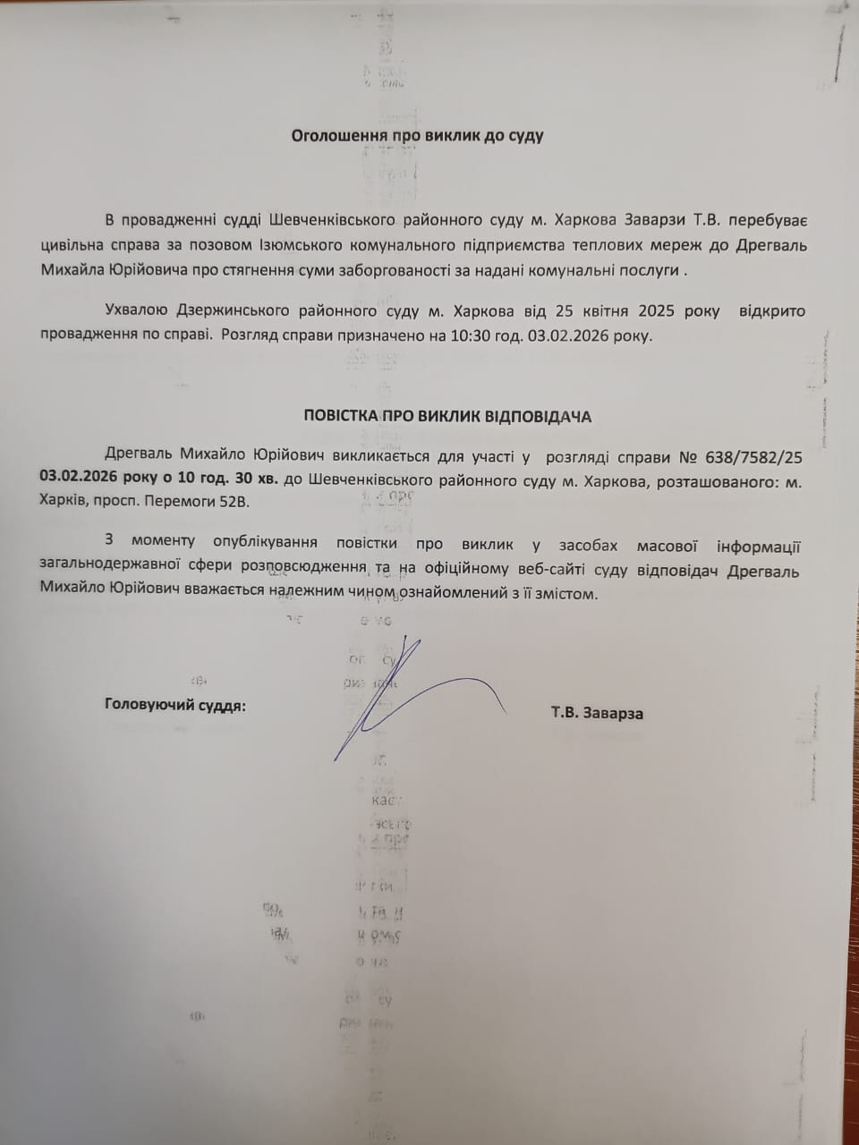 Оголошення про виклик особи в суд та повідомлення про судове рішення