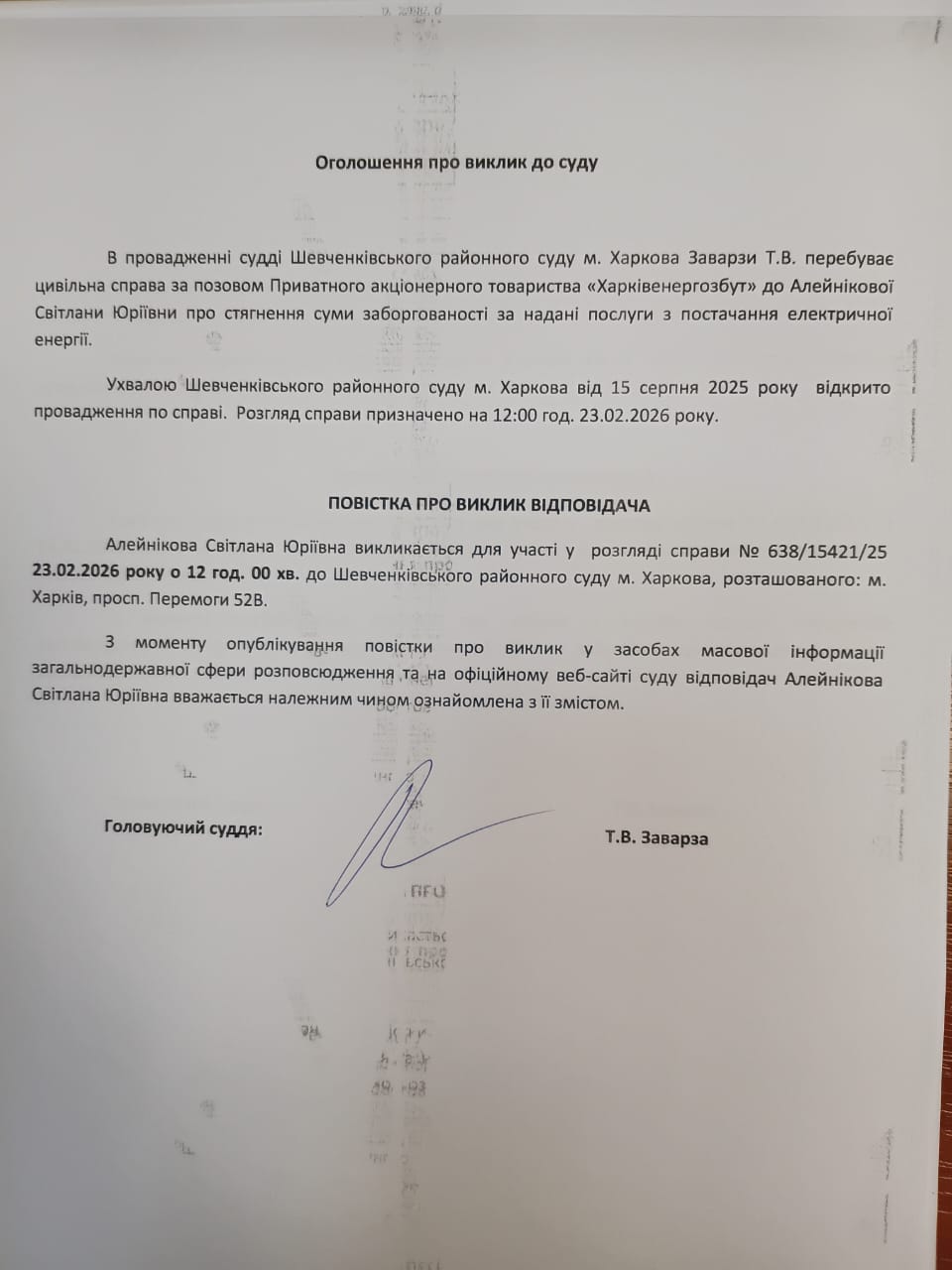Оголошення про виклик особи в суд та повідомлення про судове рішення