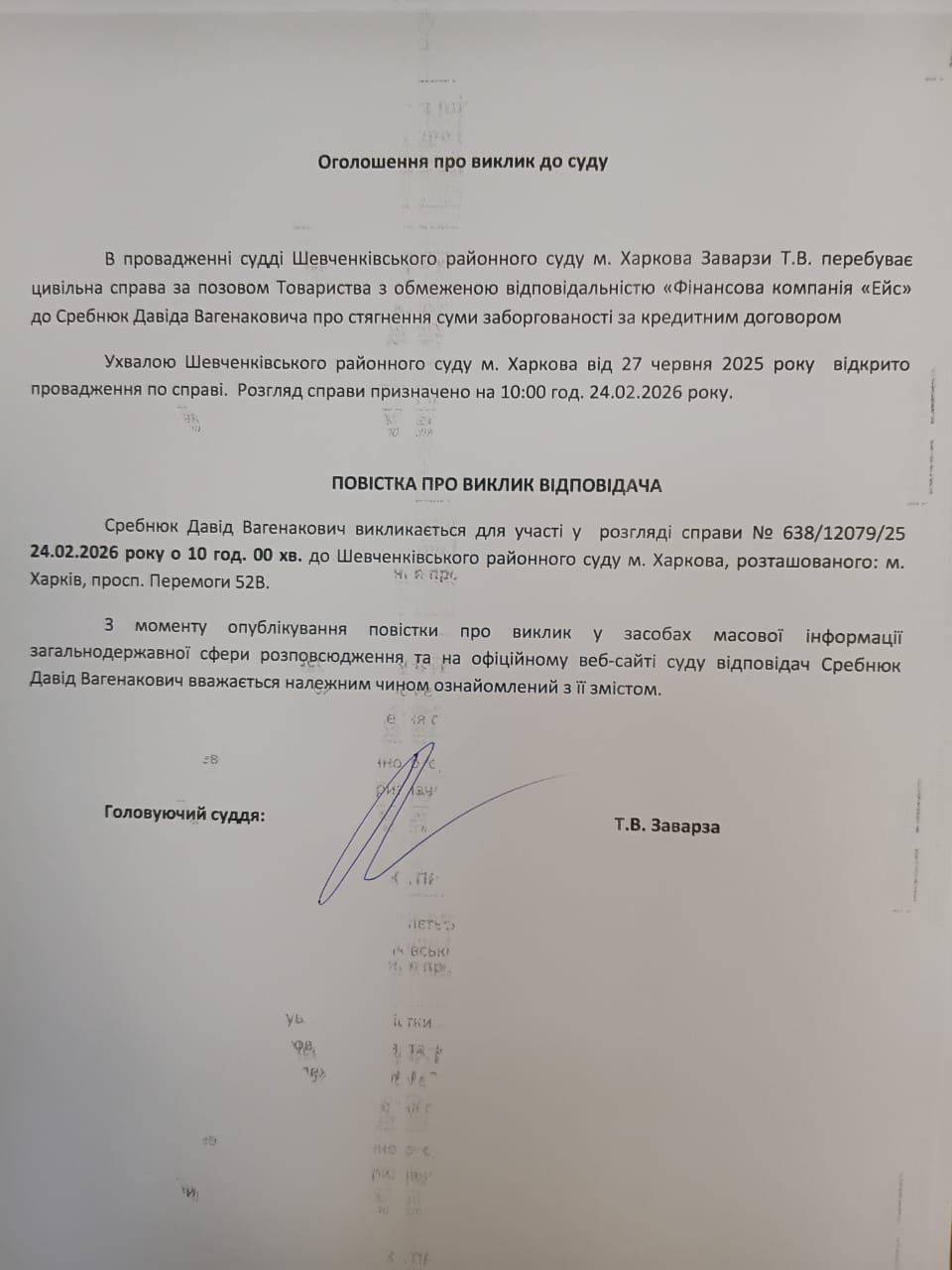 Оголошення про виклик особи в суд та повідомлення про судове рішення