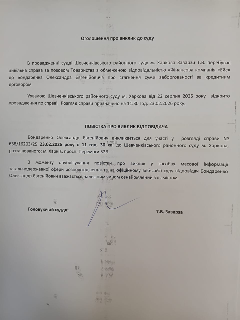 Оголошення про виклик особи в суд та повідомлення про судове рішення