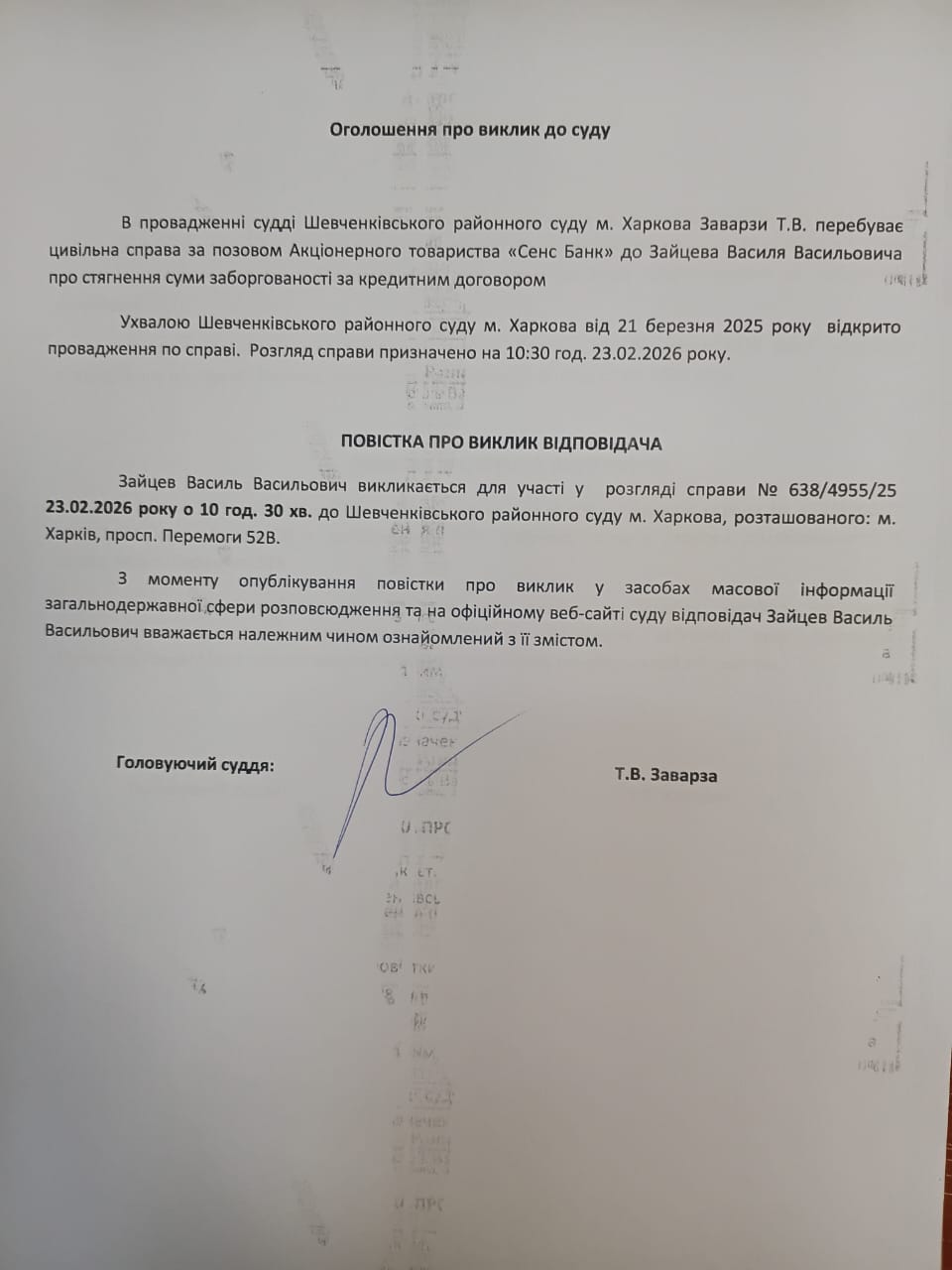 Оголошення про виклик особи в суд та повідомлення про судове рішення