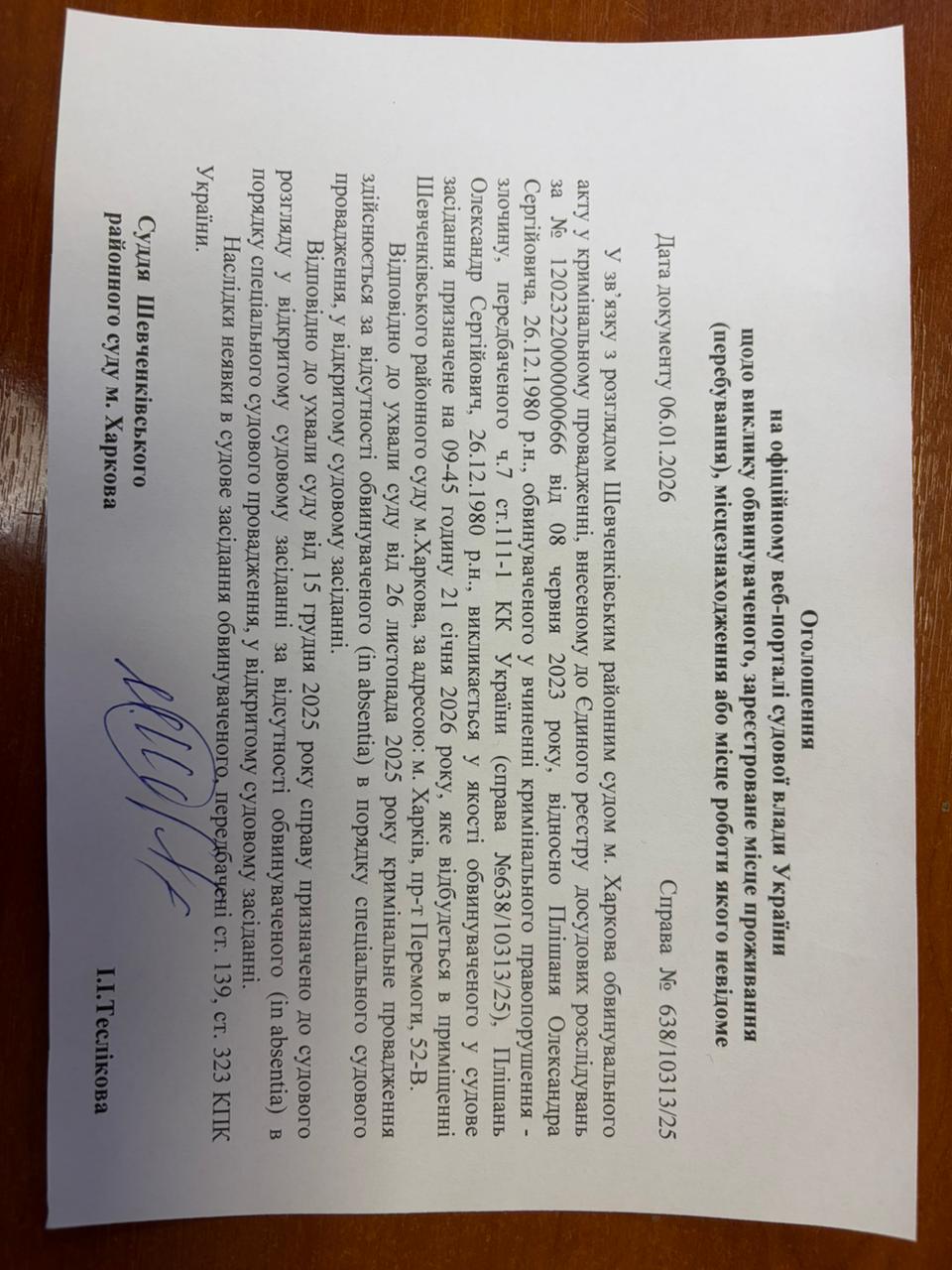 Оголошення про виклик особи в суд та повідомлення про судове рішення