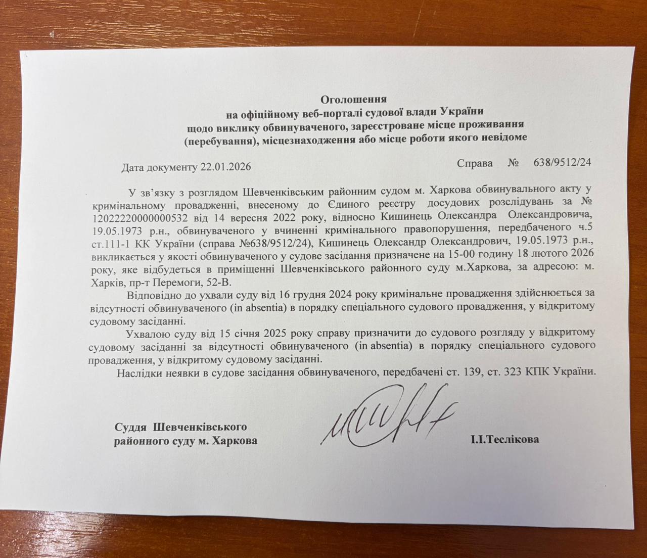 Оголошення про виклик особи в суд та повідомлення про судове рішення