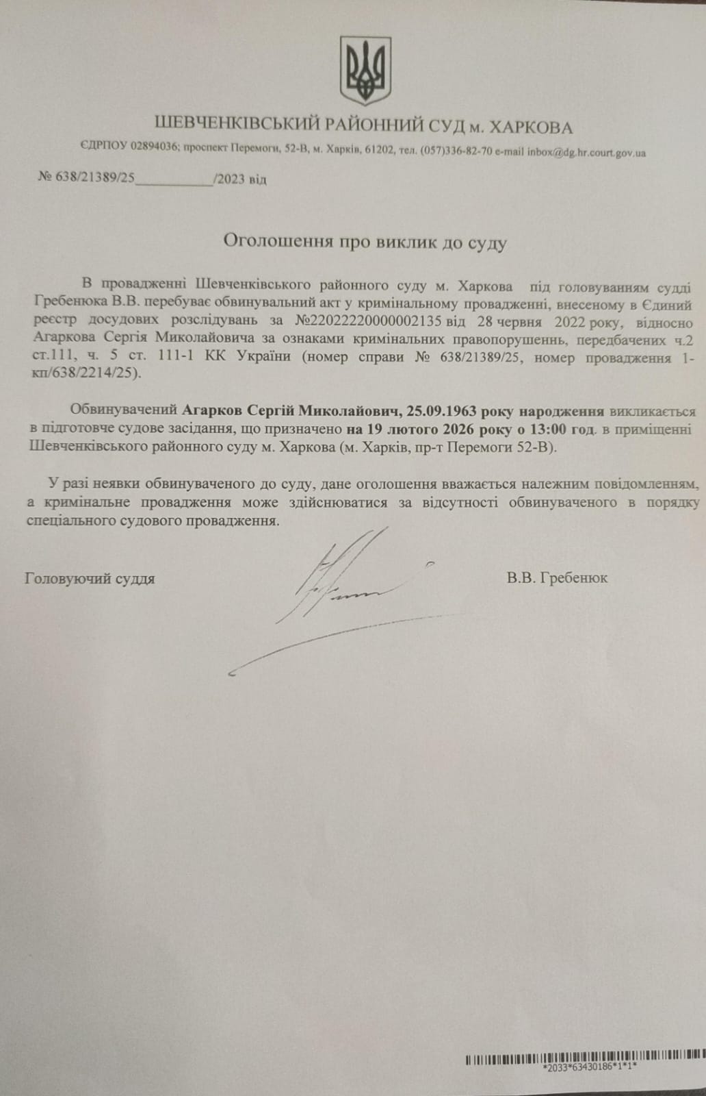 Оголошення про виклик особи в суд та повідомлення про судове рішення