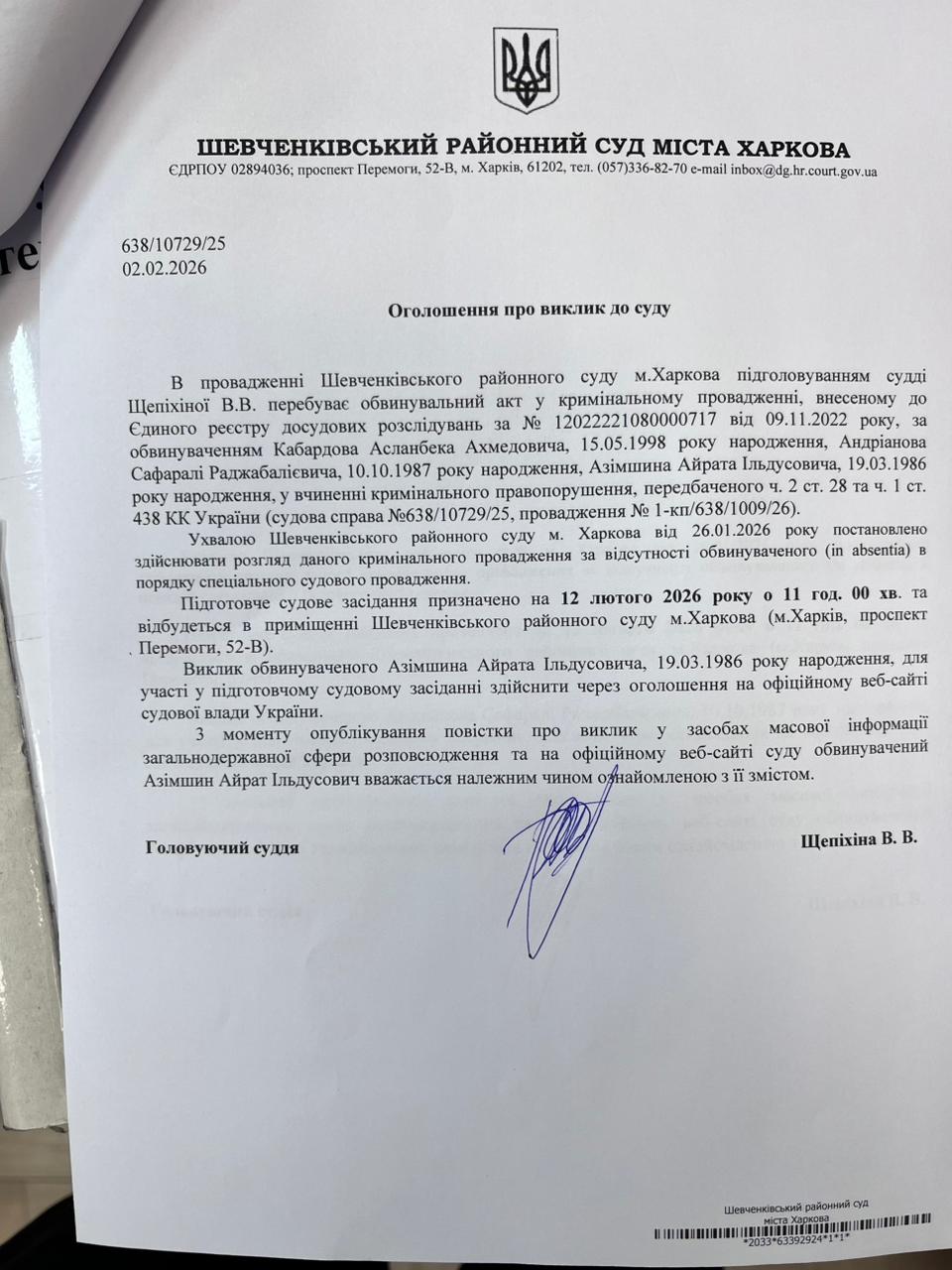 Прес-служба Шевченківського районного суду м. Харкова