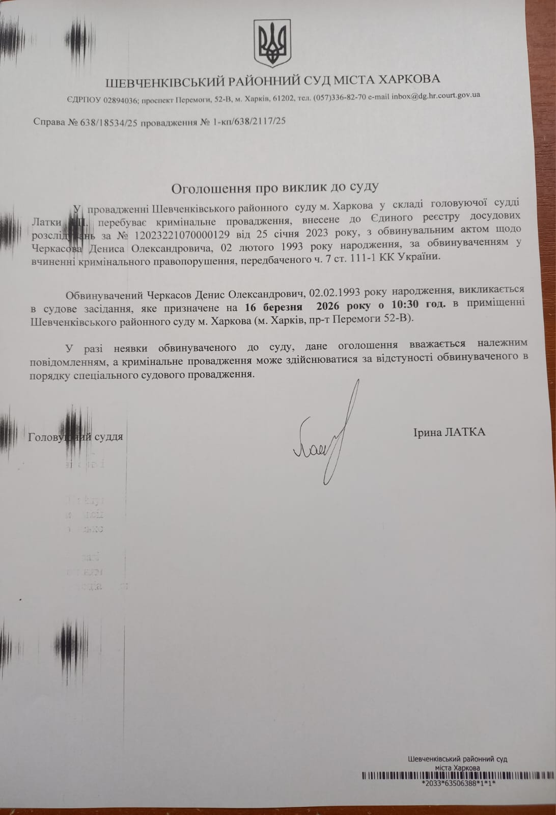 Прес-служба Шевченківського районного суду м. Харкова
