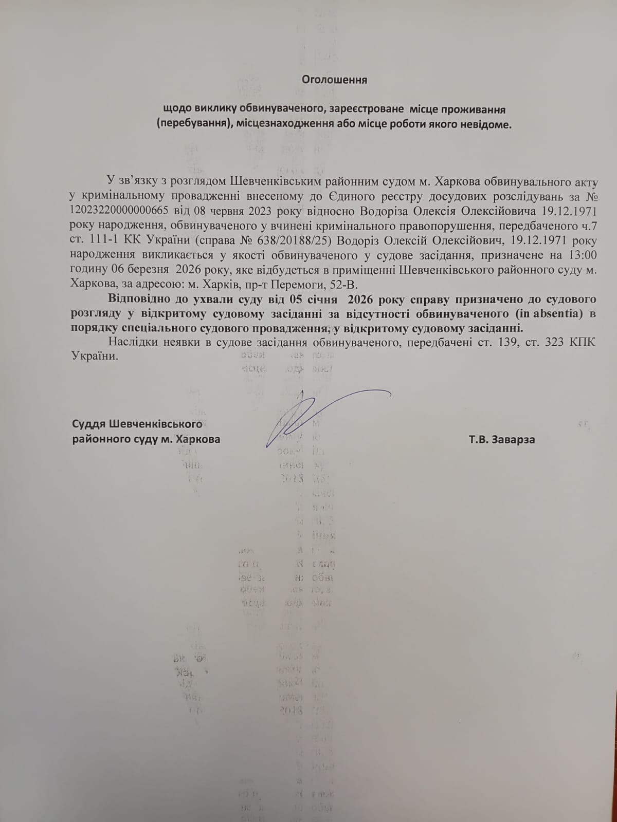 Оголошення про виклик особи в суд та повідомлення про судове рішення