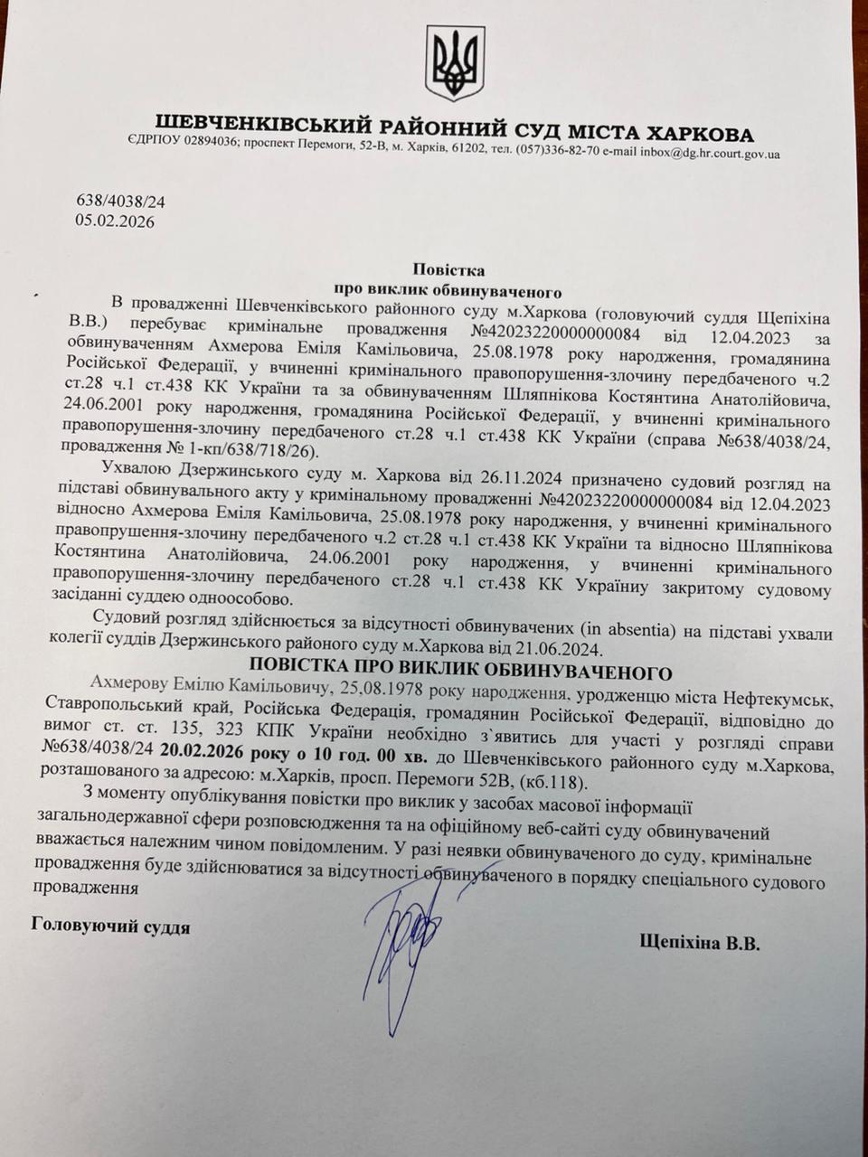 Оголошення про виклик особи в суд та повідомлення про судове рішення
