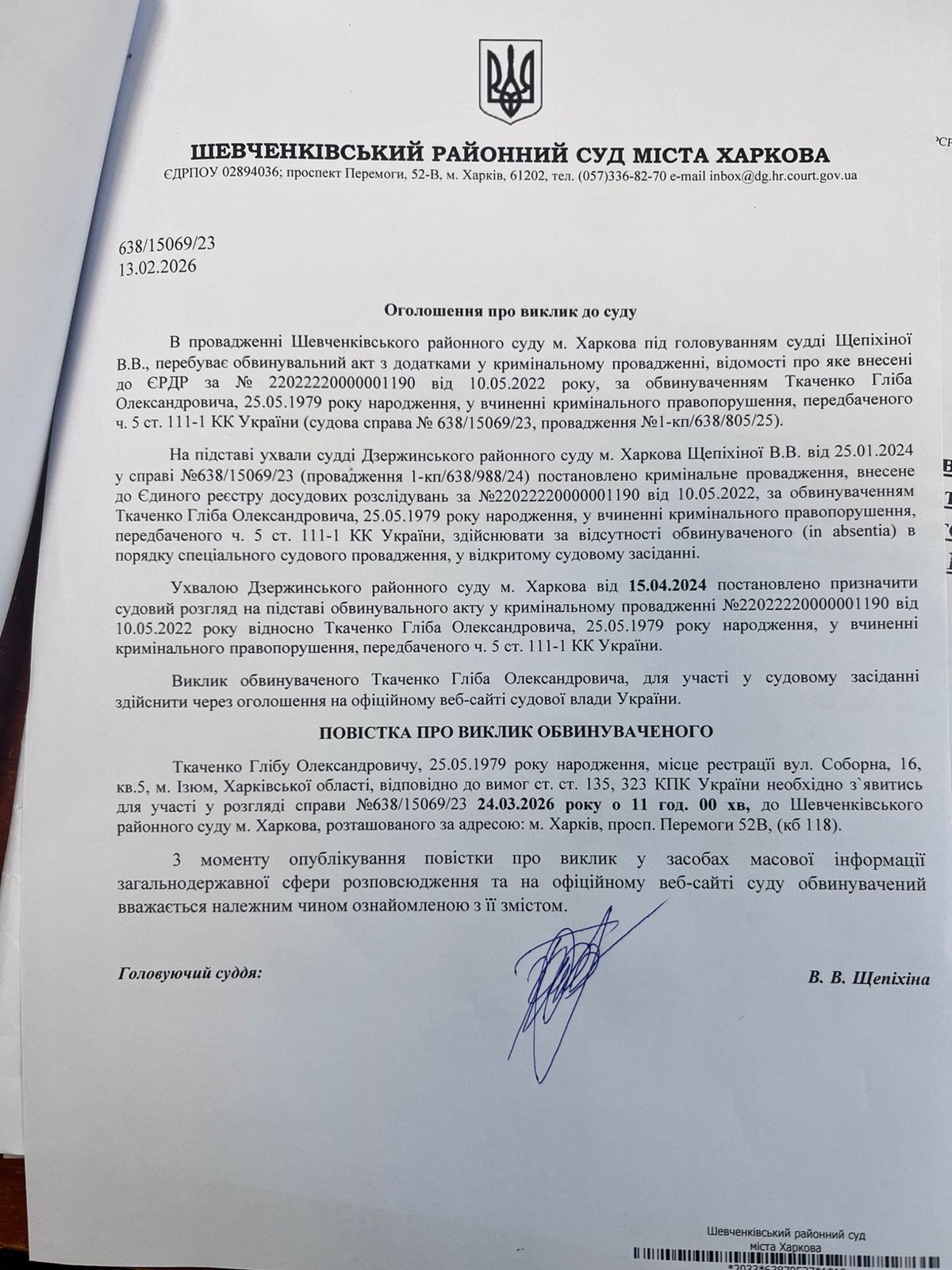 Прес-служба Шевченківського районного суду м. Харкова