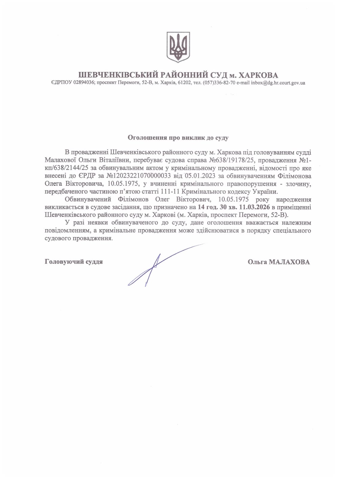 Оголошення про виклик особи в суд та повідомлення про судове рішення