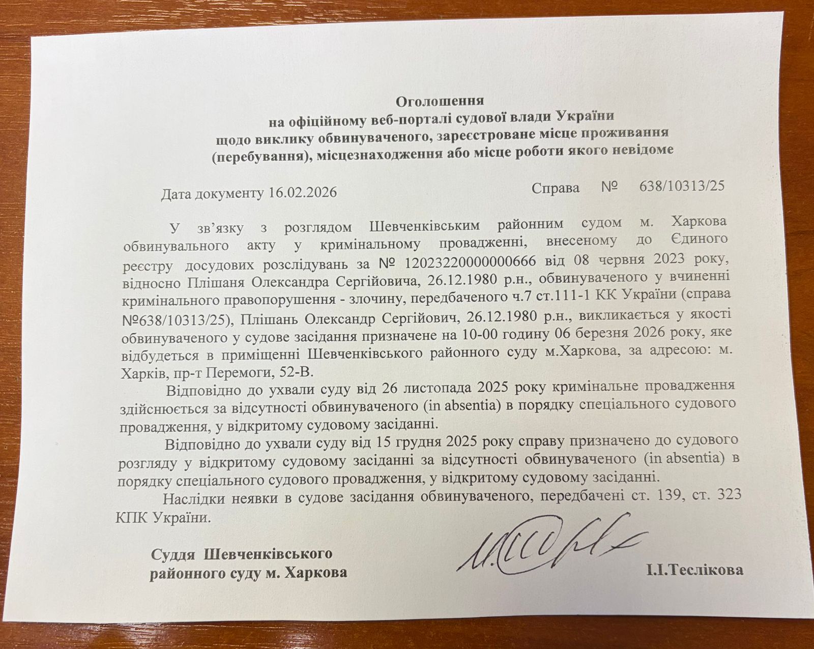 Оголошення про виклик особи в суд та повідомлення про судове рішення
