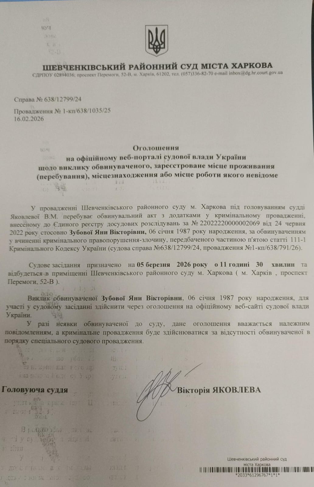 Оголошення про виклик особи в суд та повідомлення про судове рішення