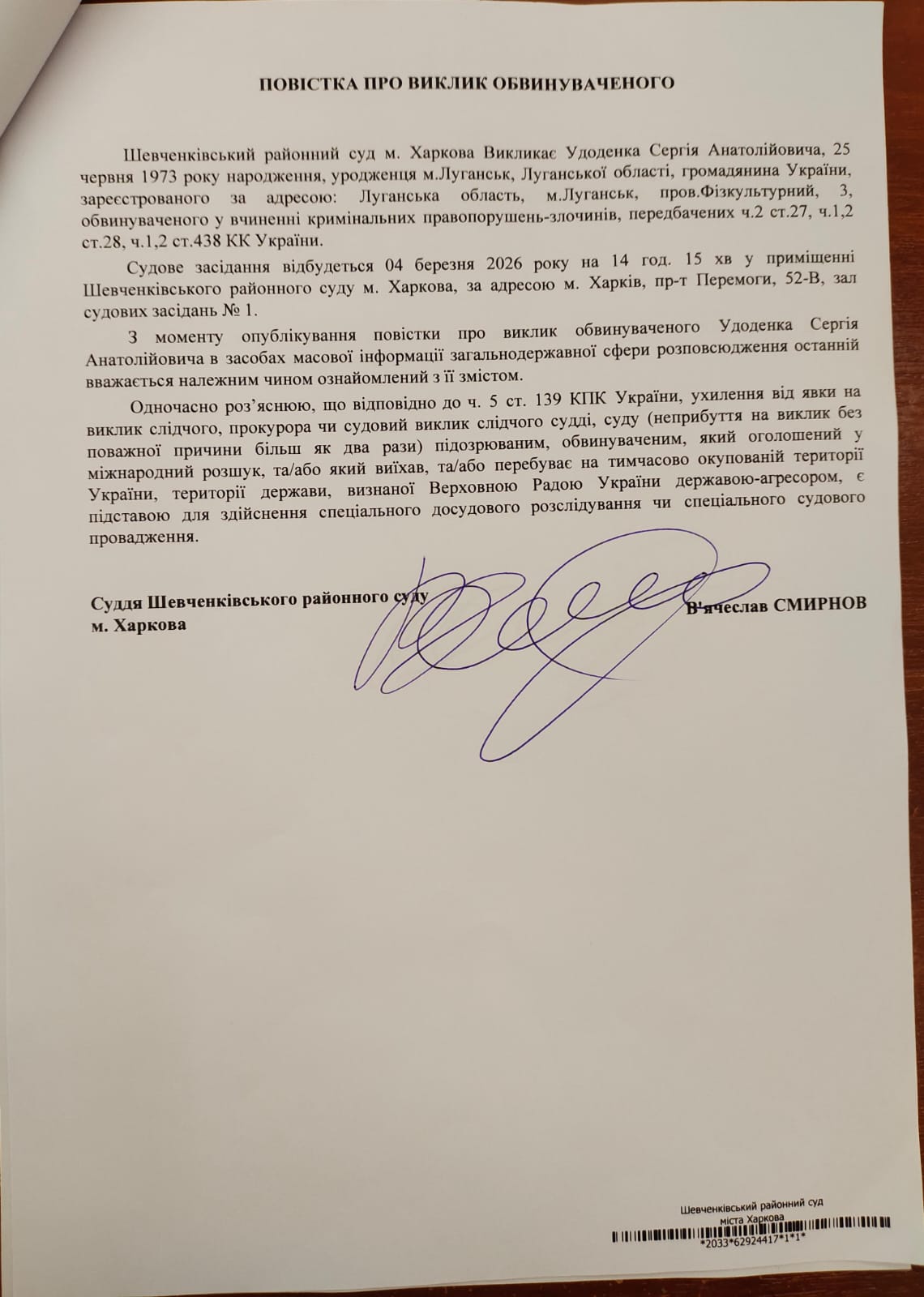 Оголошення про виклик особи в суд та повідомлення про судове рішення