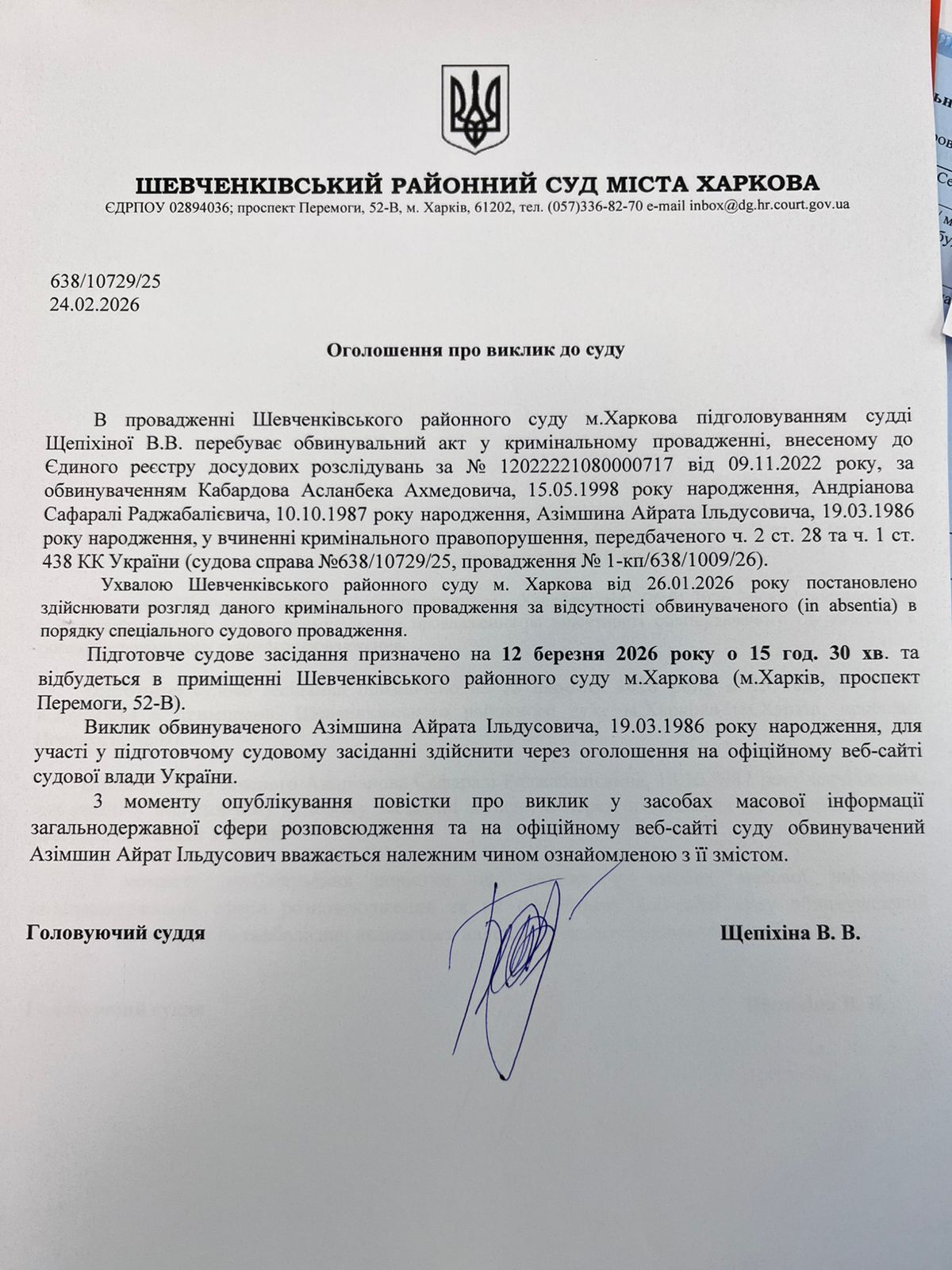 Оголошення про виклик особи в суд та повідомлення про судове рішення