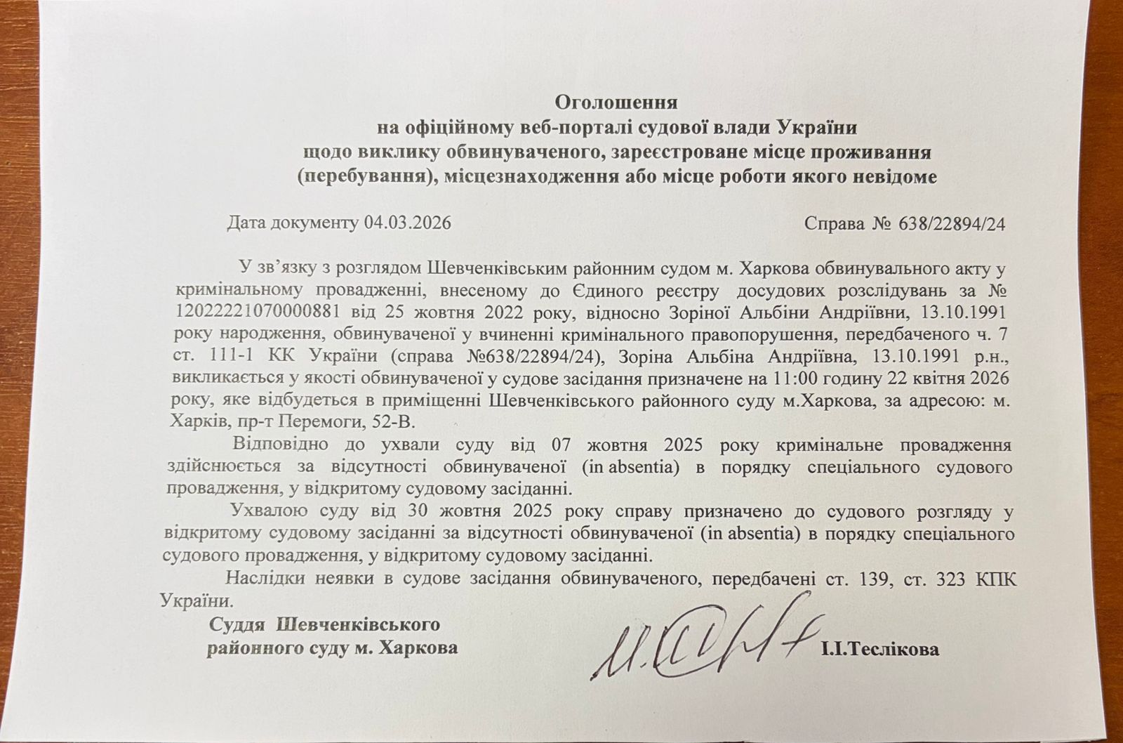 Оголошення про виклик особи в суд та повідомлення про судове рішення