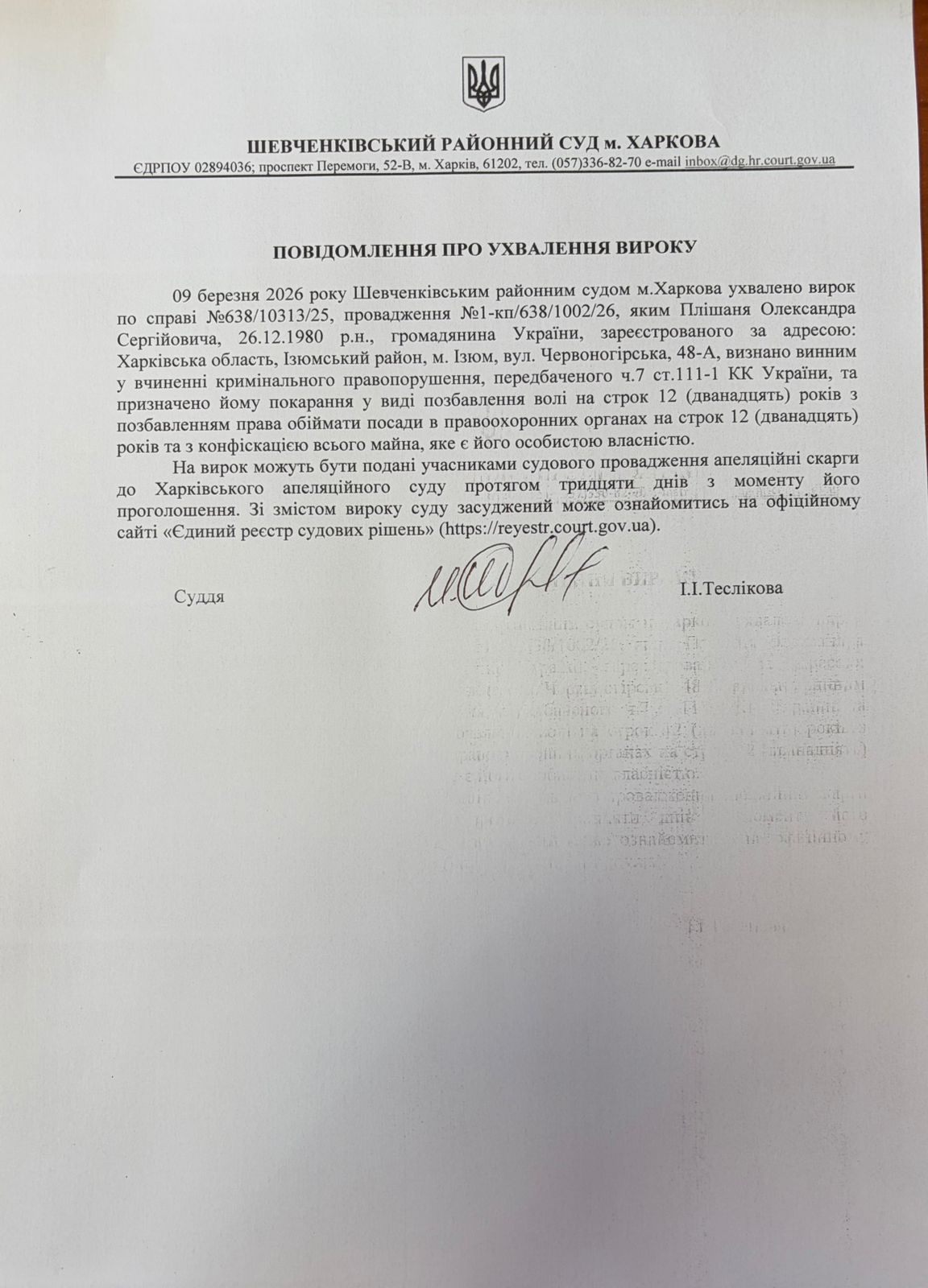 Прес-служба Шевченківського районного суду м. Харкова