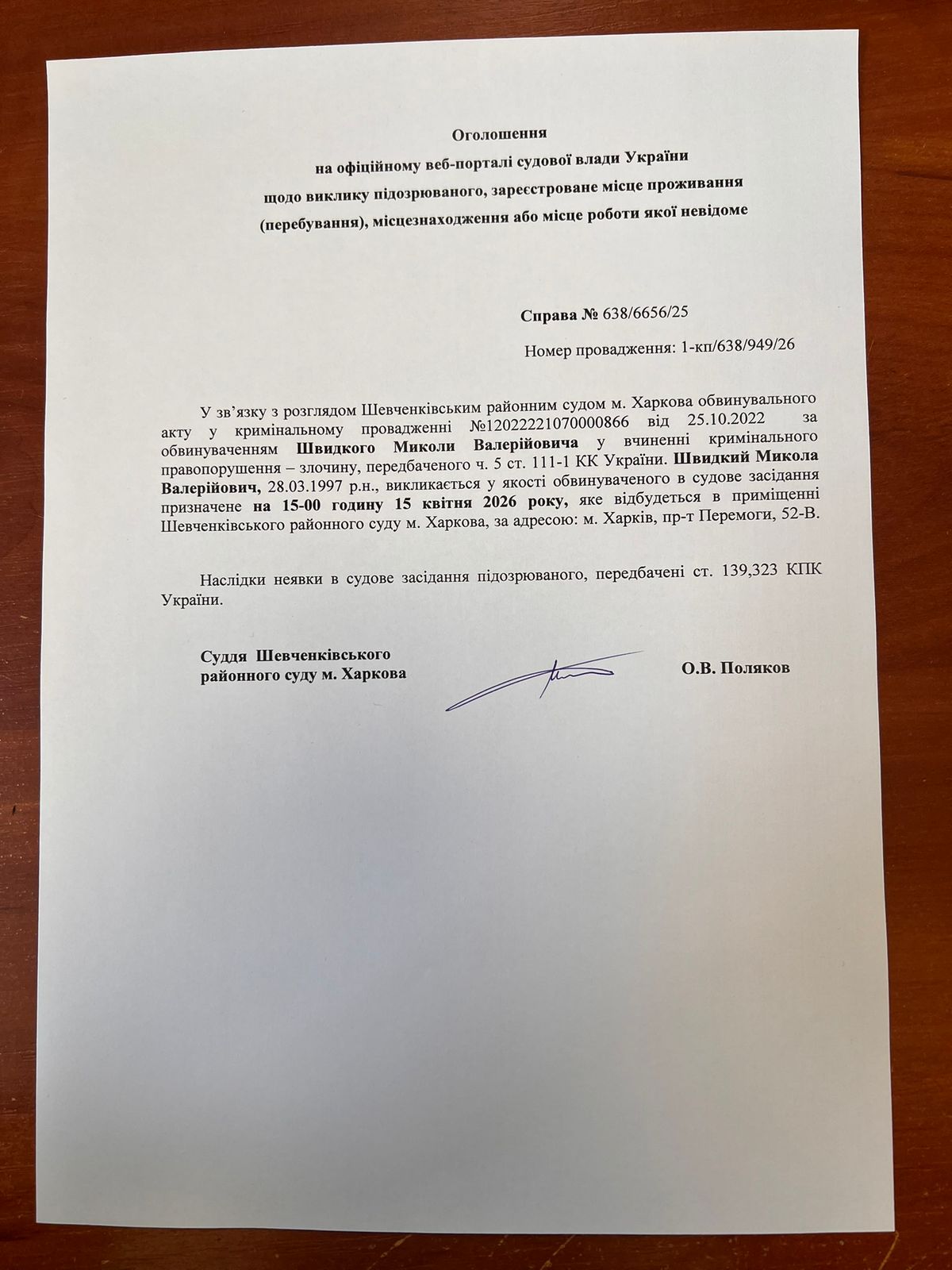 Оголошення про виклик особи в суд та повідомлення про судове рішення