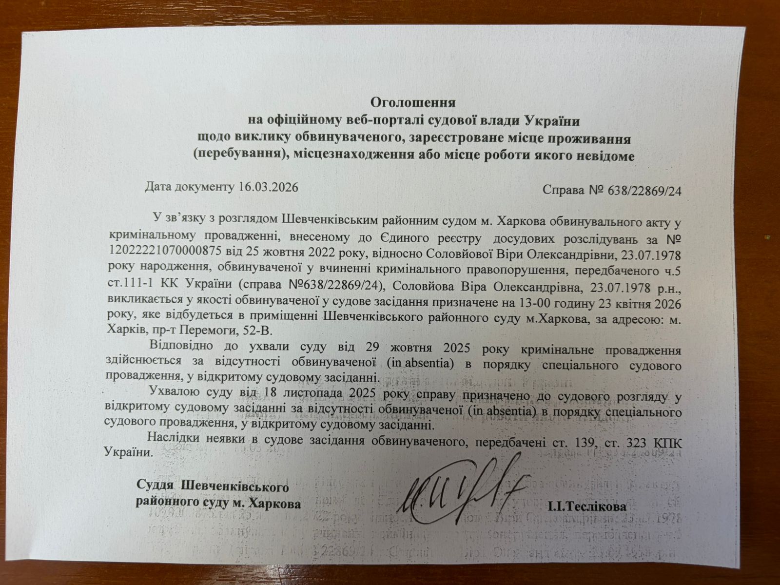 Оголошення про виклик особи в суд та повідомлення про судове рішення