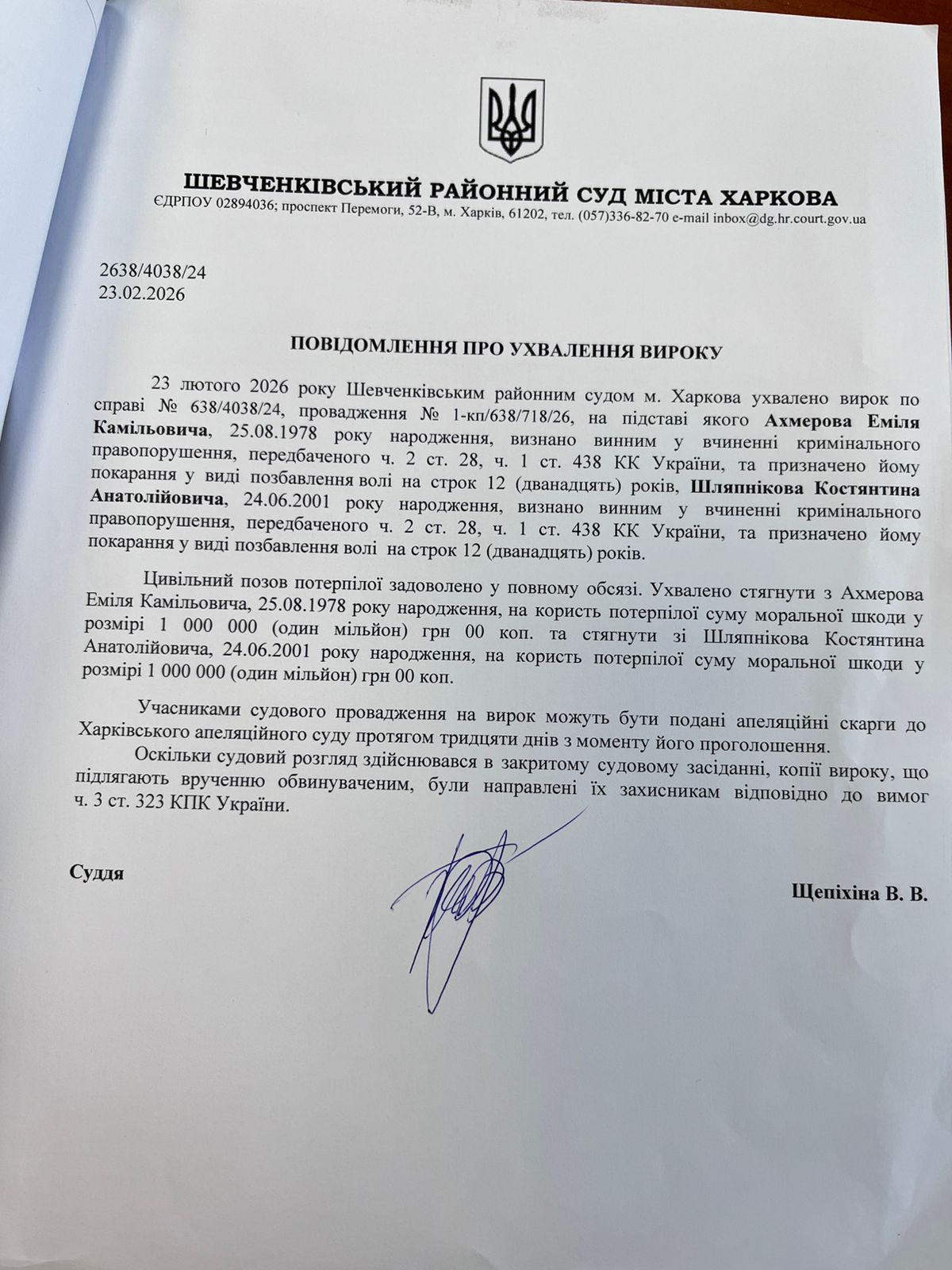 Ухвалення вироку відносно Ахмерова Е.К. та Шляпнікова К.А.