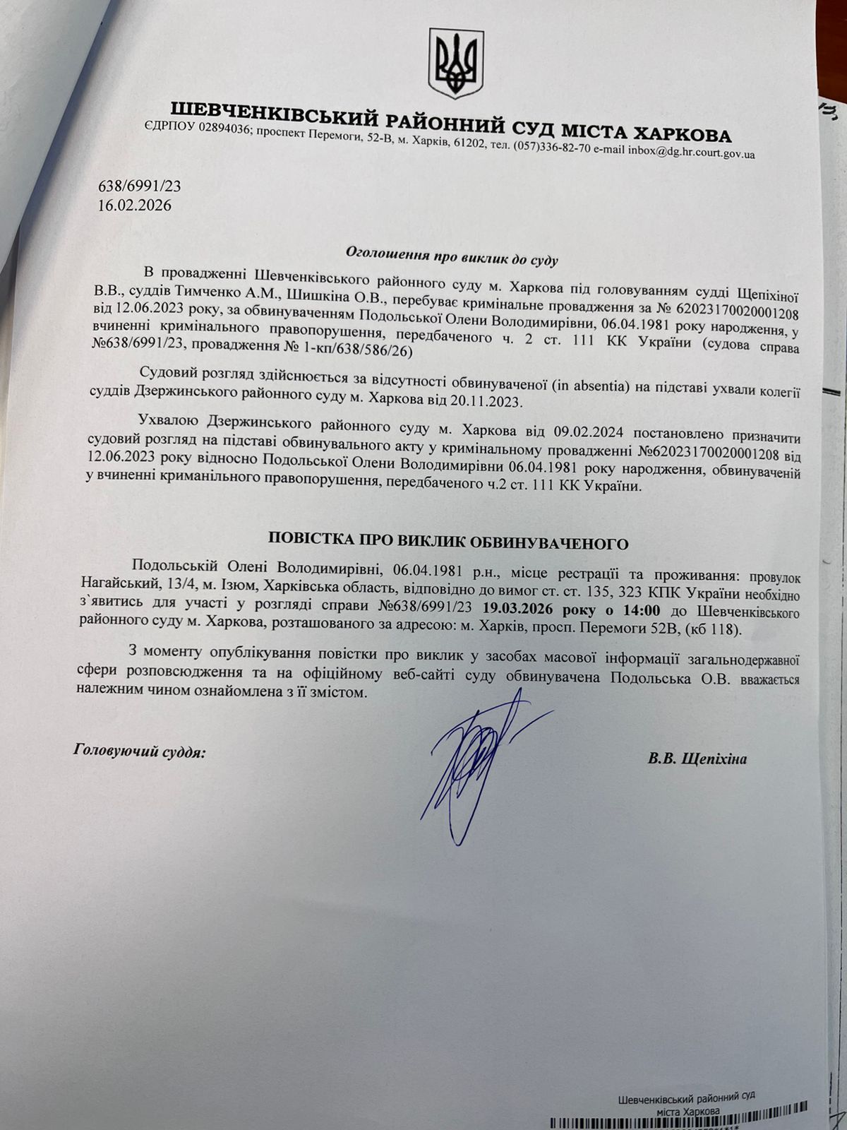 Оголошення про виклик особи в суд та повідомлення про судове рішення