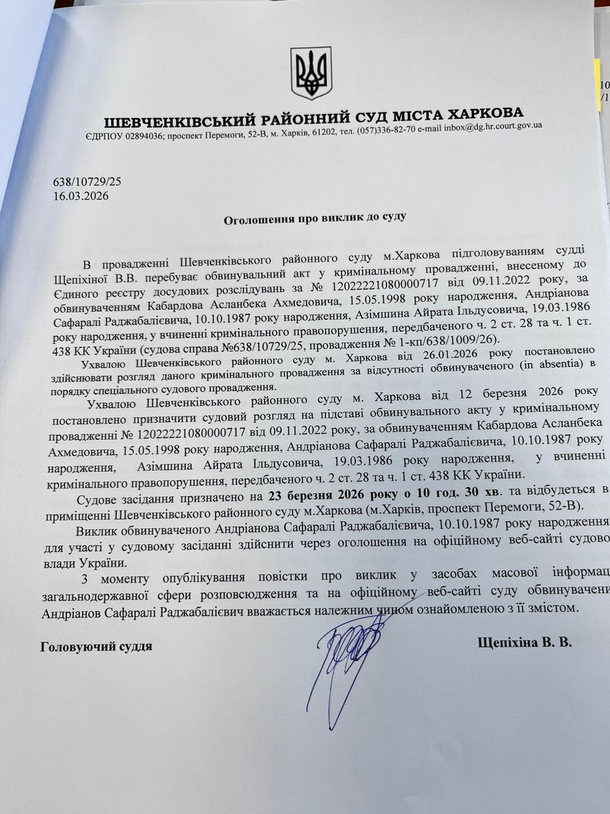 Оголошення про виклик особи в суд та повідомлення про судове рішення