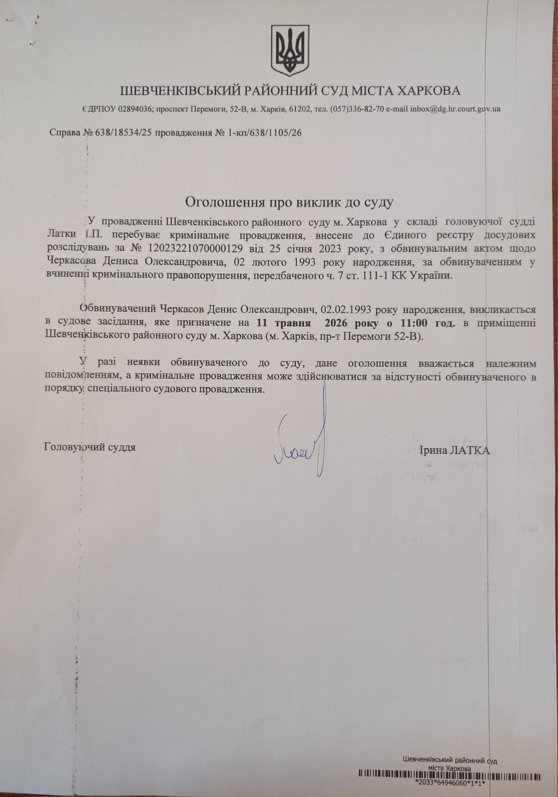 Прес-служба Шевченківського районного суду м. Харкова
