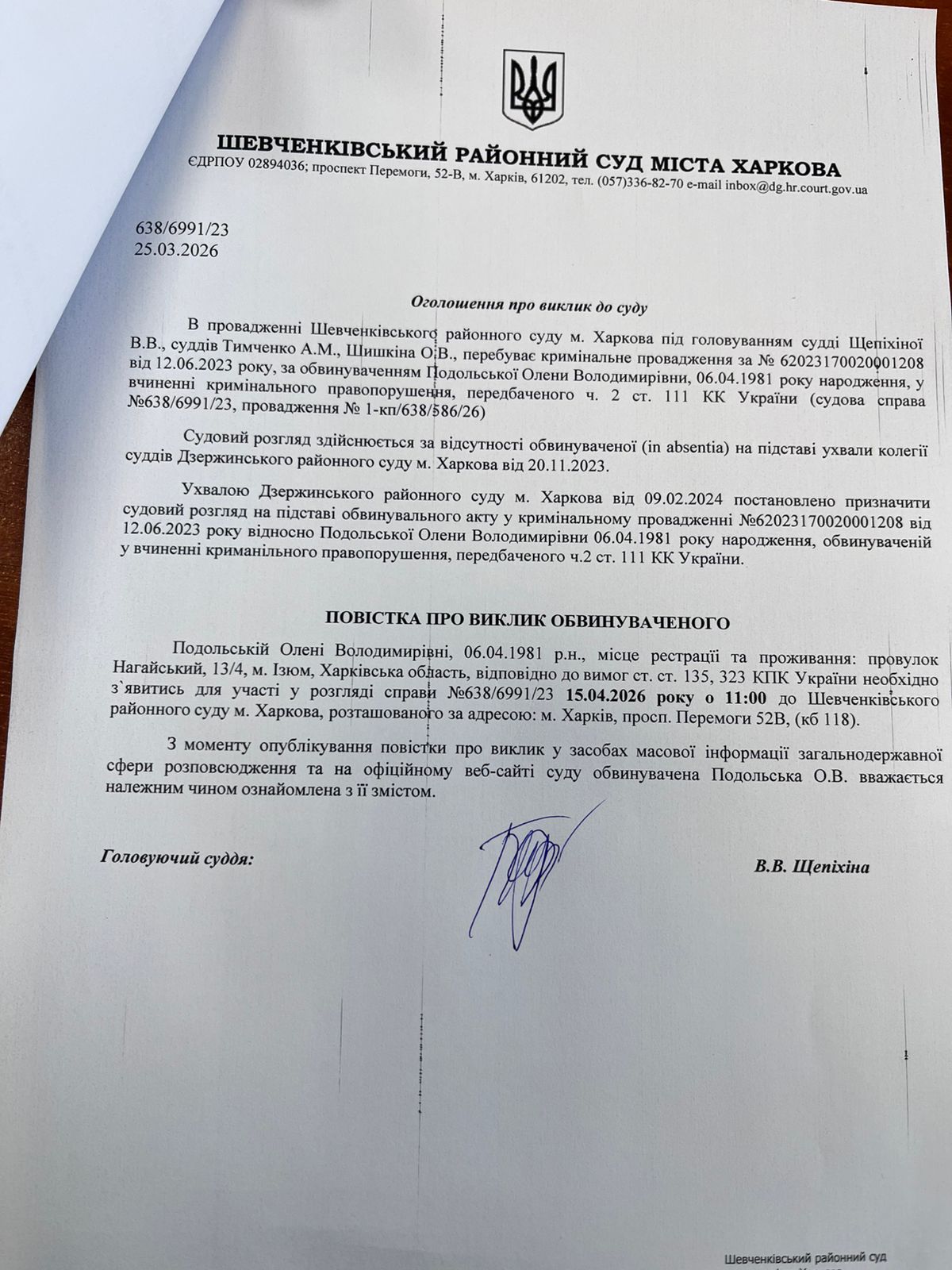 Прес-служба Шевченківського районного суду м. Харкова
