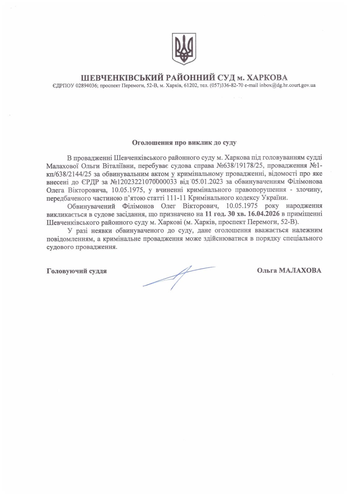 Оголошення про виклик особи в суд та повідомлення про судове рішення