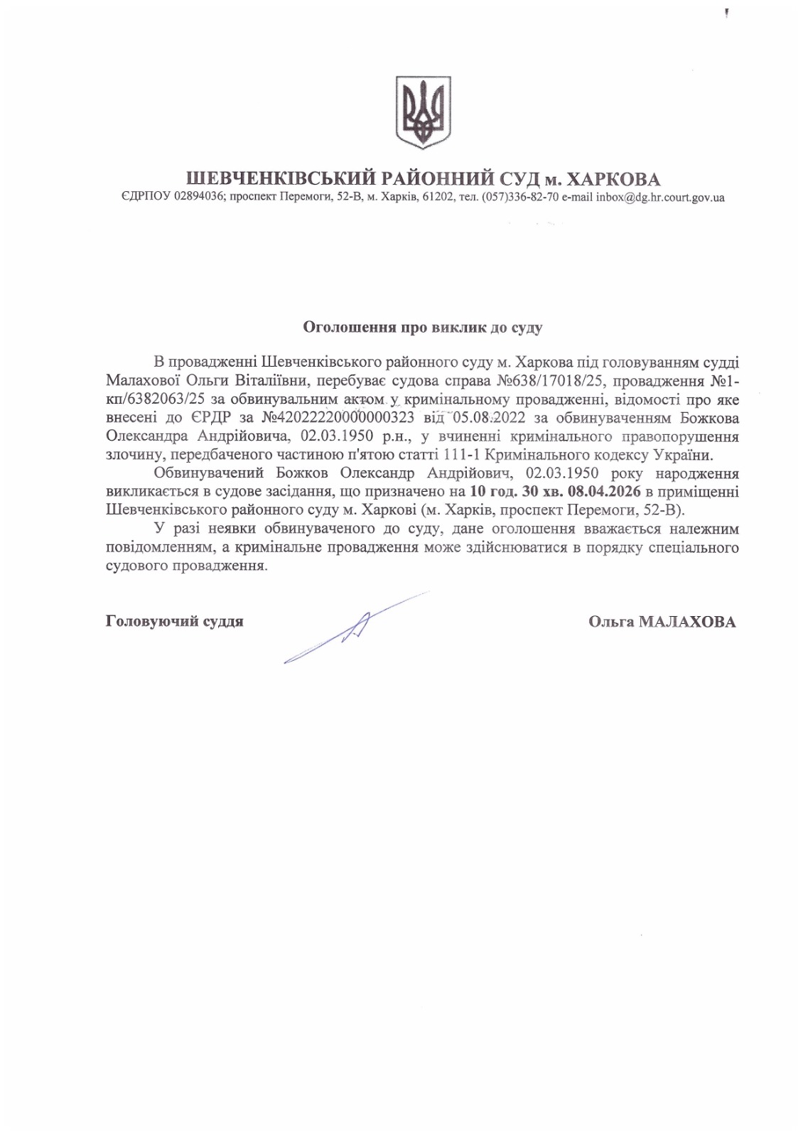 Прес-служба Шевченківського районного суду м. Харкова