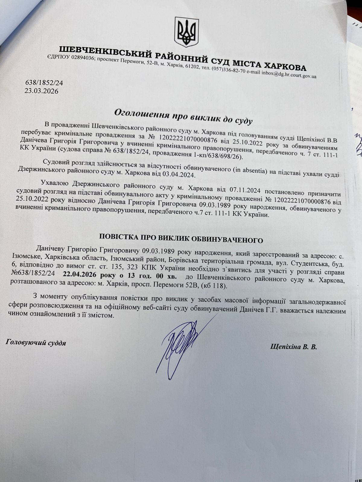 Прес-служба Шевченківського районного суду м. Харкова