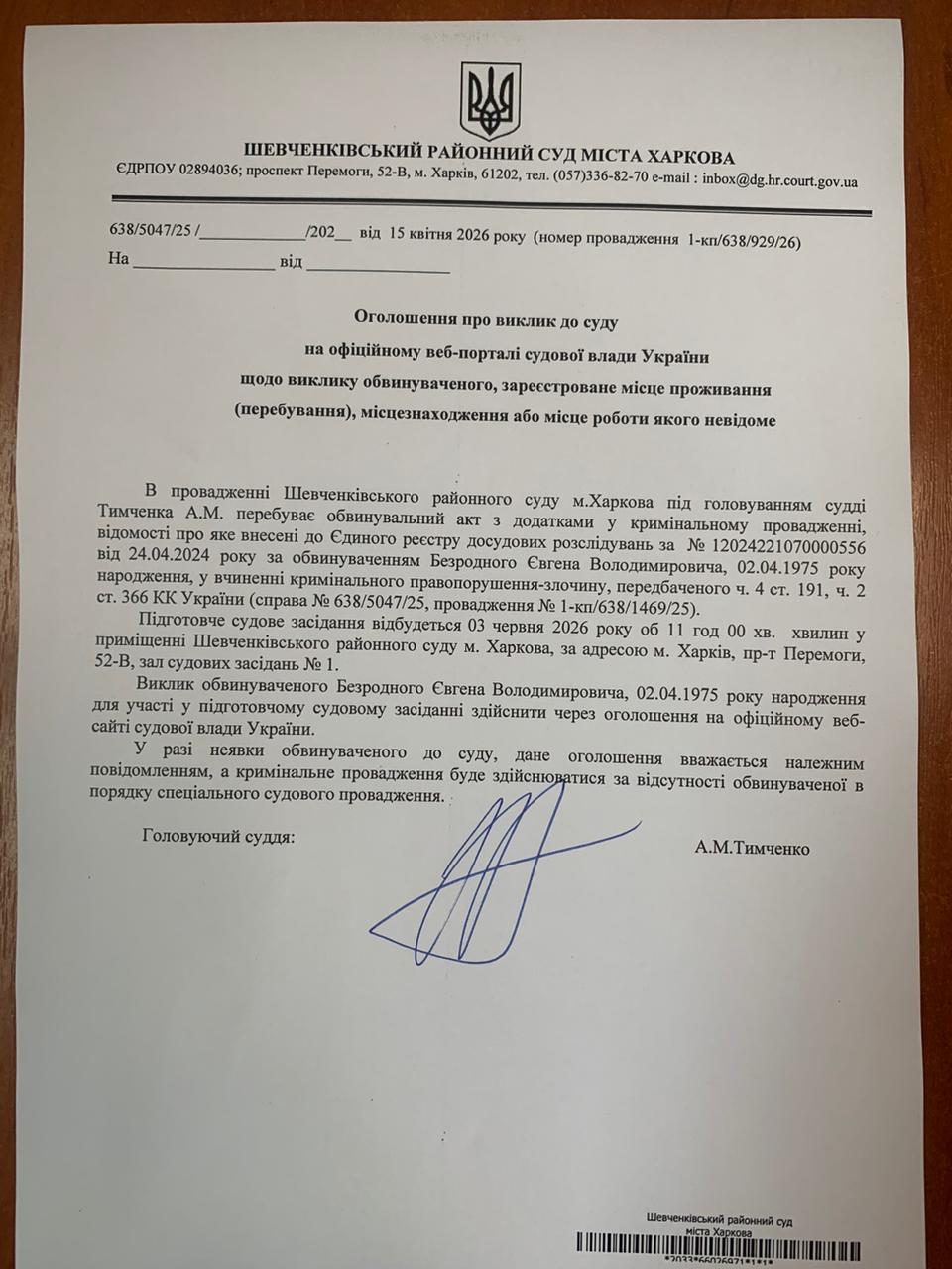 Прес-служба Шевченківського районного суду м. Харкова