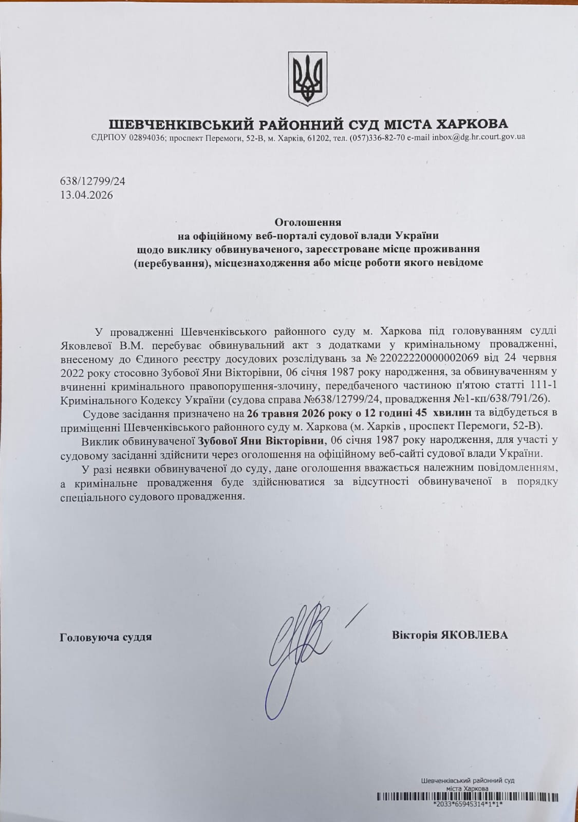 Прес-служба Шевченківського районного суду м. Харкова
